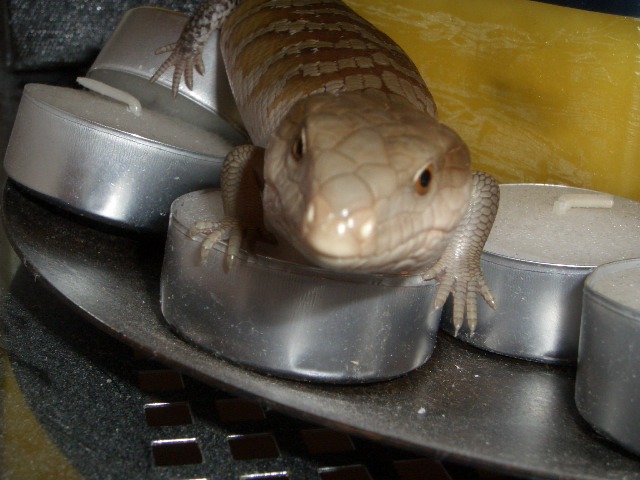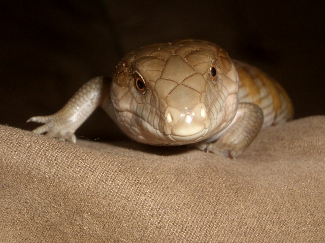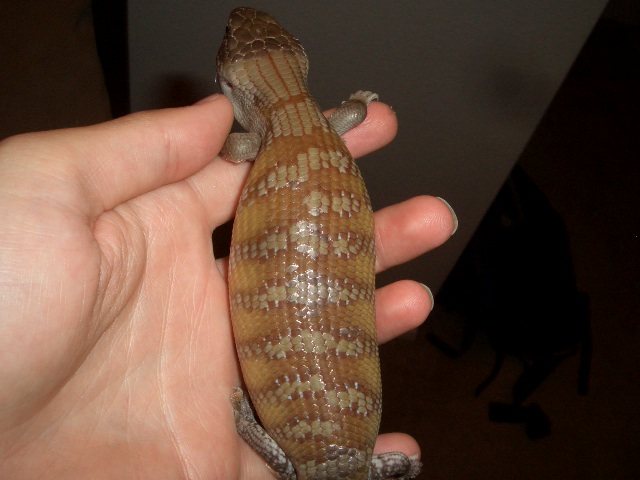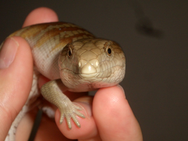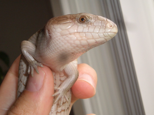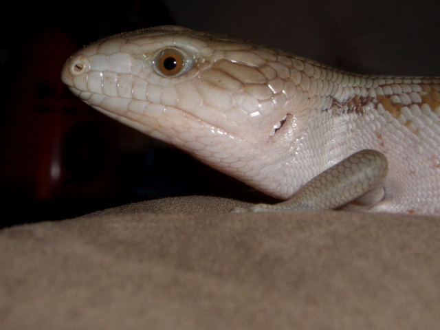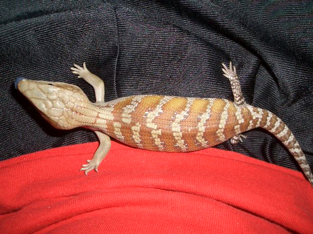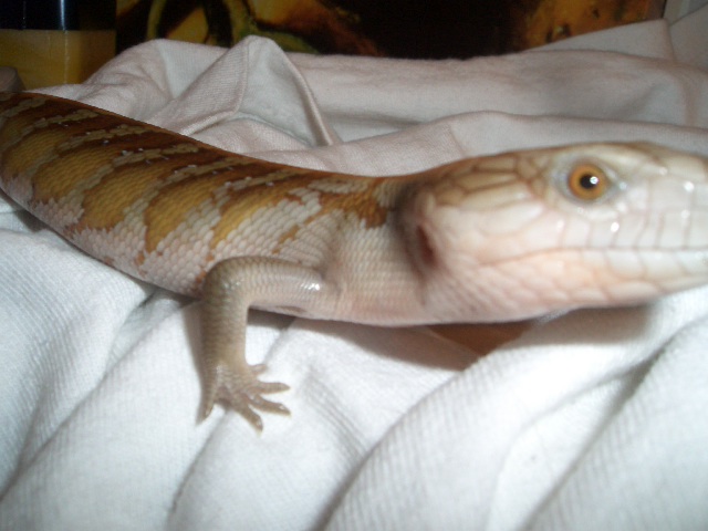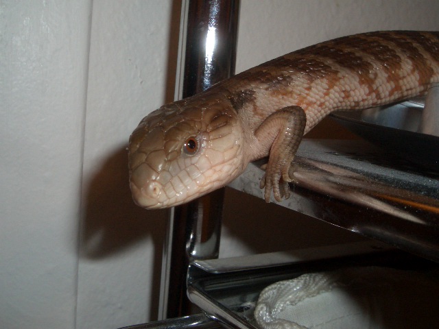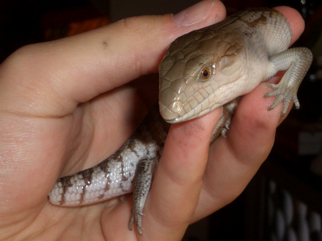 This light colored baby is named Tilly (Tenderheart, but that was too long!). She is shy, but sweet. She closes her eyes when we pet her head and constantly flickers her blue tongue when exploring uncharted territory. Don't get the wrong idea, she is tame as a kitten, just not quite as outgoing. She would make the perfect cuddle bug, and seems to relish just cudding up on your lap. |