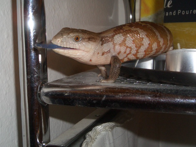 Meet Shelly—she has fabulous lighter orange coloration and friendly and cute as can be—she's very photogenic in this spread and gave us plenty of tongue shots! She's always anxious to get out and stretch her legs. |