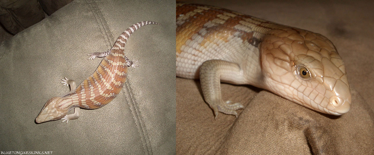 Blaze has phenomenal orange coloring that will likely lighten up creating a radiant creamy coloration -- his sides look like they came off an entirely different skink. It's really cool -- be sure to click his picture for several good angles. Wow, it almost looks like he's wearing a "skink suit" and that you can see his true color down the middle of his back! |