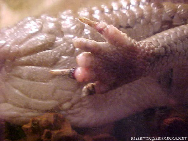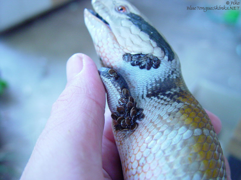 As we now know, pet stores usually do not carry blue tongues on a regular basis; especially compared to other popular lizards. And unfortunately, the few times you do see one, it is a wild caught animal in poor health. Pet stores will usually tell you what you want to here, and telling you that the blue tongue is captive bred (when they really have no idea) is usually not above them. If an employee (usually an unexperienced teen) has a chance of selling you an animal, and getting their cut of the sale, they'll do it. Many employees won't even know what wild caught vs. captive bred is all about. So to put it plainly, DO NOT RELY ON PET STORE ADVICE. Recognizing wild caught animals can be difficult because very often stores get in young animals that never got the chance to be exposed to harsh natural conditions. Adult wild caught animals can look rough. Scars, missing/broken toes, corroding lips, parasites, you name it. If they look beat up, they're most assuredly a wild caught. It's not a 100% indication however, as you can never know for sure if the guy across the street didn't drop off a recently bred female that he didn't have luck with (breeding consists of biting, and the females can sometimes sustain permanent scarring), but it's very unlikely. Afterall, who would sell a female that was possibly gravid (pregnant). Animals can also be in poor shape if the pet store keeps them in poor conditions. Blue tongues kept together (which is a risky and ignorant thing to do, but done all too often at pet stores) will often fight resulting in massive scars, bitten off feet, and severed tails. Here is an example of what a wild caught or neglected animal might look like upon careful inspection. Click to enlarge.