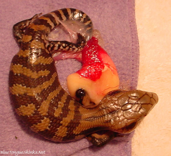 The time is here! First off, it's important to provide an environment that is conducive to the breeding event. For example, introduce the female into the MALE's cage. The male is doing all the work here, so he should be in the place he's accustomed too (this isn't particularly important, so if you were unable to use the male's enclosure for whatever reason it's ok). Also, remove all substrate before introducing the pair, or cover it completely with a towel. When they mate, the male's hemipenes are fully exposed for a long period of time (right before actual copulation that is, and for a bit after). A single touch to almost any type of substrate will stick to him like crazy, and then when he mates with the female, the substrate could get trapped inside her (and him). Once you have introduced them, just sit and observe. The male could start nipping at the female's hind quarters, he may bite at her side, they could circle each other, they could lash out at each other, or they could do nothing. Be prepared. The female's tail will probably flail around erratically, which is a good sign. If all goes well, the male will eventually secure a firm neck hold on your female, and they will attempt to mate. The female cooperates by lifting her tail, the male tucks his tail underneath, and copulation takes place. This can last anywhere from 30 seconds to even a few minutes (in the wild they have been seen copulating for much, much longer). You should watch the entire event to make sure feet and tails aren't getting torn off. NEVER leave them on their own unattended for ANY amount of time. This is extraordinarily dangerous. During the breeding season (or any time during the year really), if animals are left together, they can and will breed each other senseless causing terrible damage. Remember when breeding, it's important to only put them together for the approximate 5-10 minute session, then separate them immediately. Remember that they are not in the wild where they will be able to run away; they are trapped in a small indoor terrarium with no escape. There is really no arguing this. I receive nonstop email messages from people who *received* animals that were previously living together peacefully, and therefore they think since they did it, I can do it. It's one of the most frustrating things when people say: "well, they haven't fought yet, so I'm going to stick with it". Blue tongued skinks should never, ever, be housed together unless you have a large outdoor environment, and just because they haven't lashed out yet does NOT mean that it won't happen at some point. Of course, ultimately, it's each person's individual choice, but knowing the extreme risk, I can't understand how anyone would go ahead and do it. It only takes one time, and then one will ask himself "why didn't I listen." I've seen it countless times and it just tears me up because it's so avoidable. Keep in mind that I'm talking about keeping pairs together in an attempt to breed, but this same advice should definitey be taken any time during the year, breeding season or not.